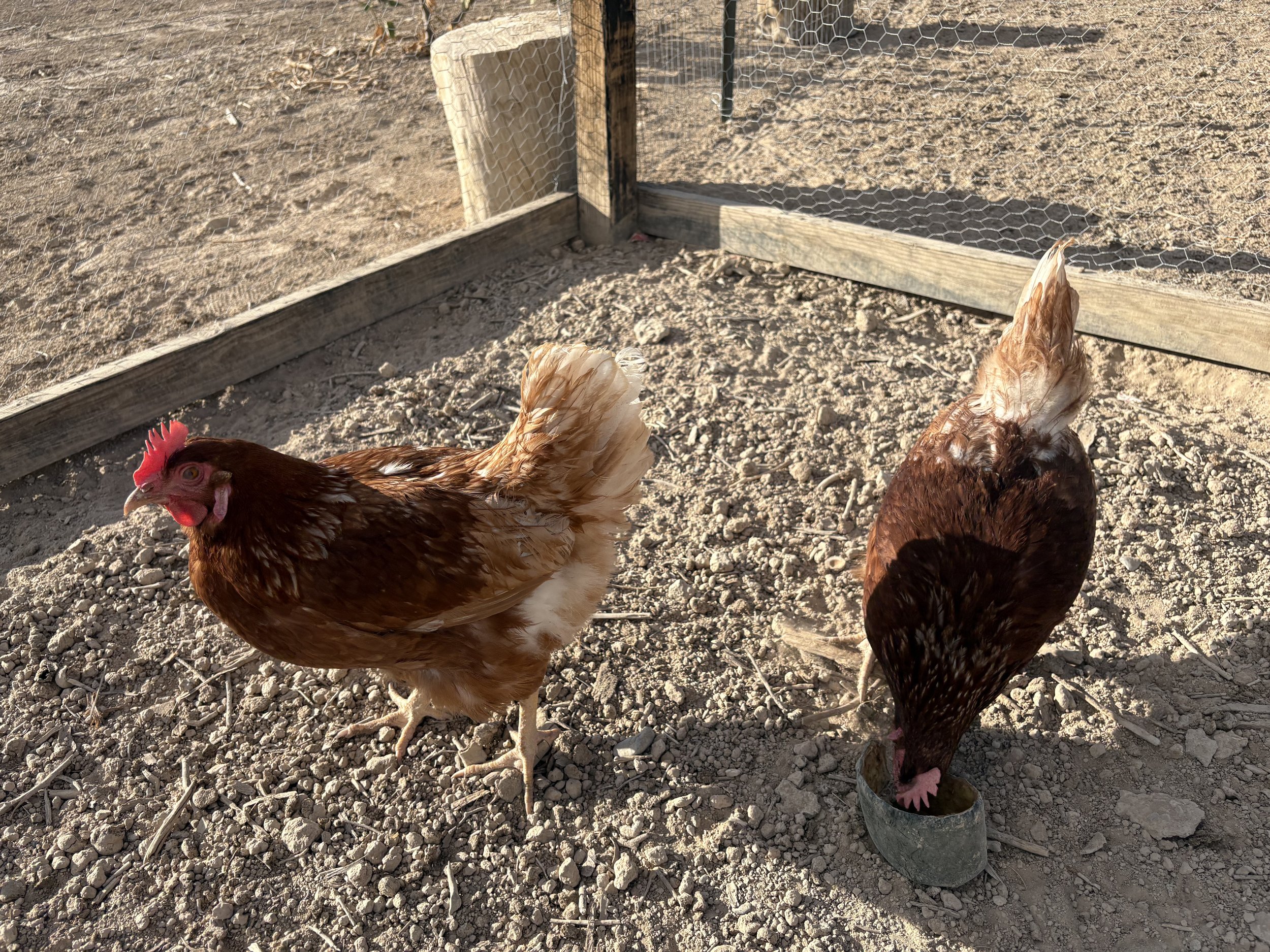 The Quarter White Twins got their names while they were chicks, only sporting quarter of their tail feathers being white. They are indistinguishable and produce identical USDA: Medium, AA quality eggs.